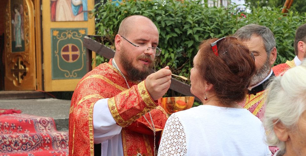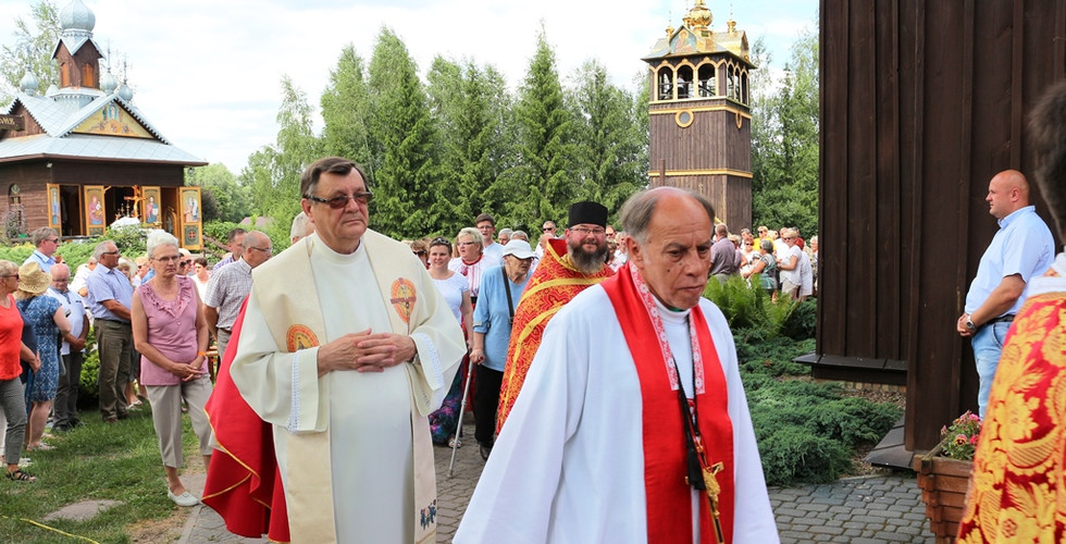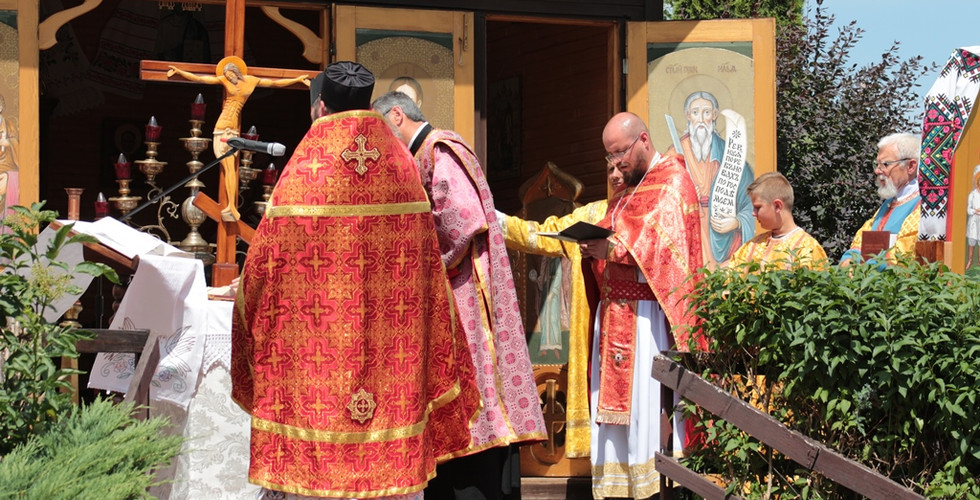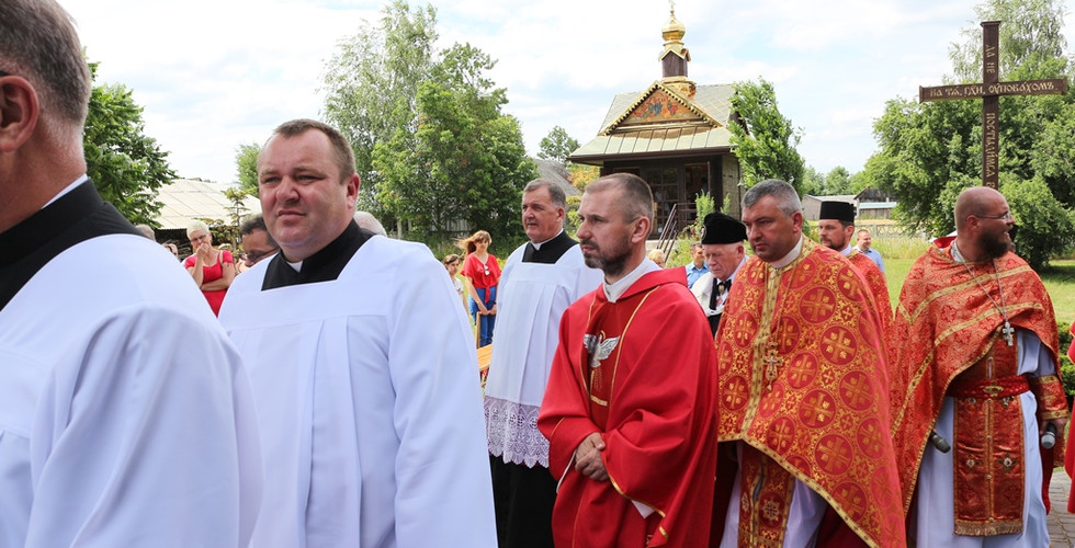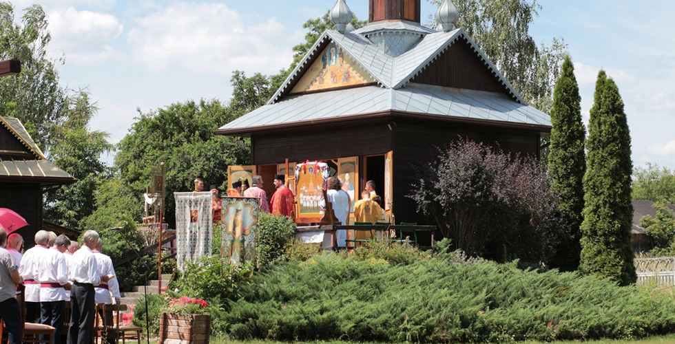 Niedzielne świętowanie rozpoczęliśmy już o 10.30, kiedy schola ze szkoły katolickiej w Białej Podlaskiej odśpiewała Akatyst ku czci Bł. W. Lewoniuka i 12 Towarzyszy pod przewodnictwem ks. Dymitra Griszan z parafii Greckokatolickiej w Witebsku na Białorusi. Boska Liturgia rozpoczęła się uroczystą procesją spod Plebanii do ołtarza polowego przy cerkwi. Mszy świętej przewodniczył proboszcz ks. Zbigniew Nikoniuk, koncelebrowali księża z dekanatu i innych parafii Diecezji Siedleckiej, oraz kapłani obrządku bizantyjskiego z zagranicy. Słowo Boże wygłosił ks. Wojciech Hackiewicz. Modlitwę zakończyła procesja wokół parafialnej świątyni, połączona z odśpiewaniem Ewangelii na cztery strony świata.